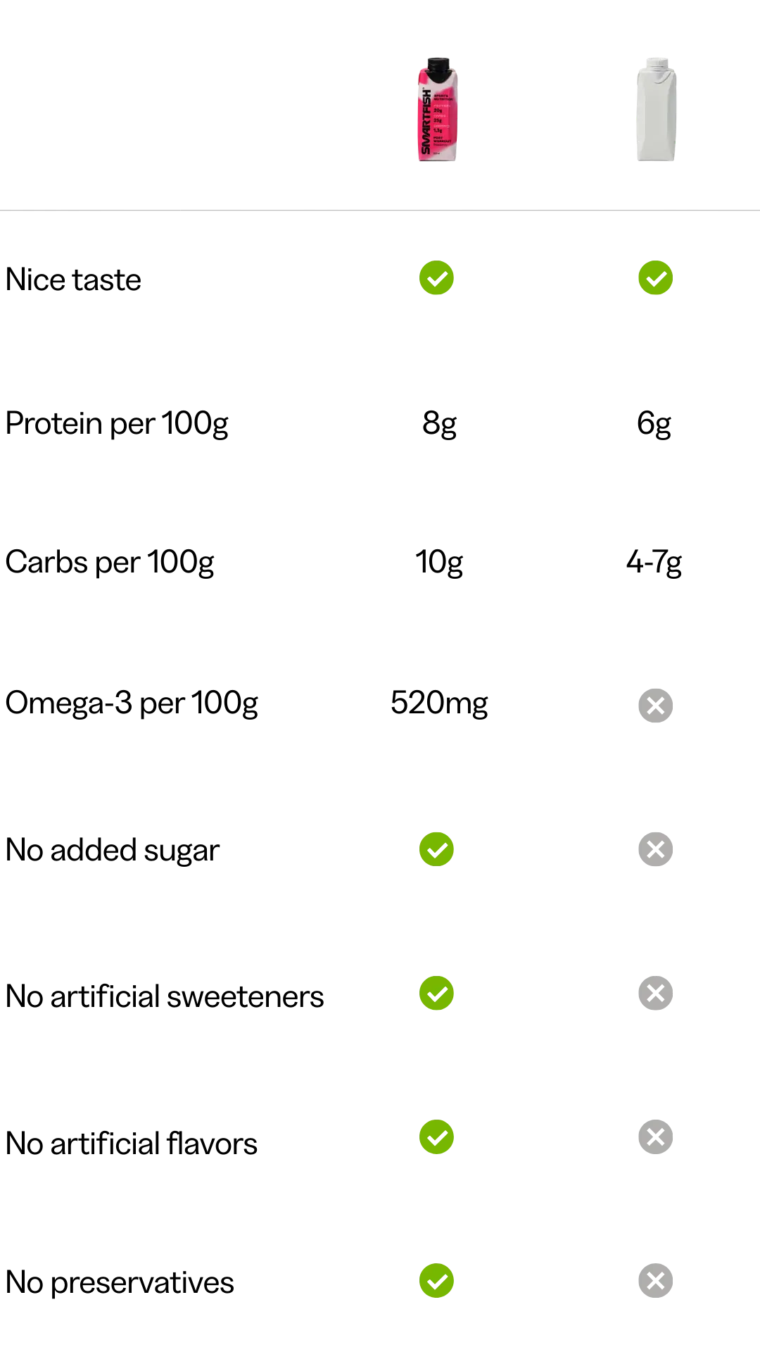 Smartfish is formulated with high-quality, purpose-driven ingredients selected to work together for optimal recovery. Combining protein, omega-3, and natural carbohydrates - the most proven ingredients on the market - in one clean, effective formula.